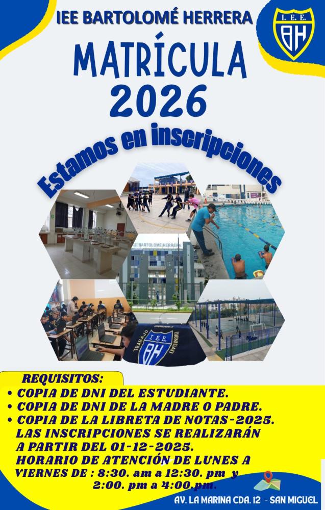 Estimada comunidad, reciban un cordial saludo la Institución Educativa Emblemática Bartolomé Herrera, con más de 75 años de experiencia y formación educativa, brindando una alta calidad educativa y desarrollo de valores.